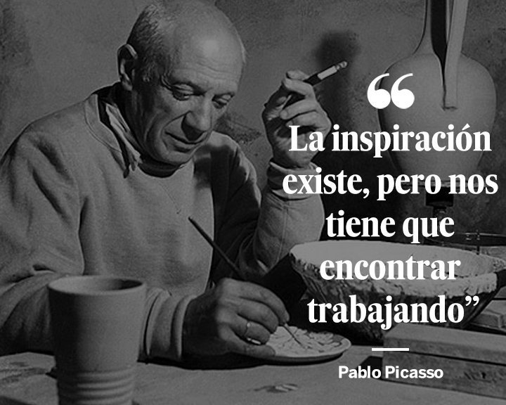 Y claro –ahora sí– ya para terminar, lo ideal de no detenernos está en seguir intentando, seguir jugando con las opciones, seguir trabajando. Pues, ya lo dijo Picasso: “La inspiración existe, pero nos tiene que encontrar trabajando”