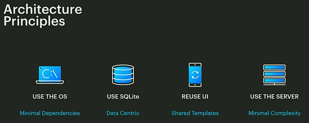 De lo que le he revisado no queda claro si antes utilizaban SQLite, pero en esta nueva versión toda la información que se utilice pasará primero por la base de datos local. Esto podría significar que no hay invocación directa a servicios pues la comunicación sería similar a lo que se ve en una aplicación monolítica convencional.